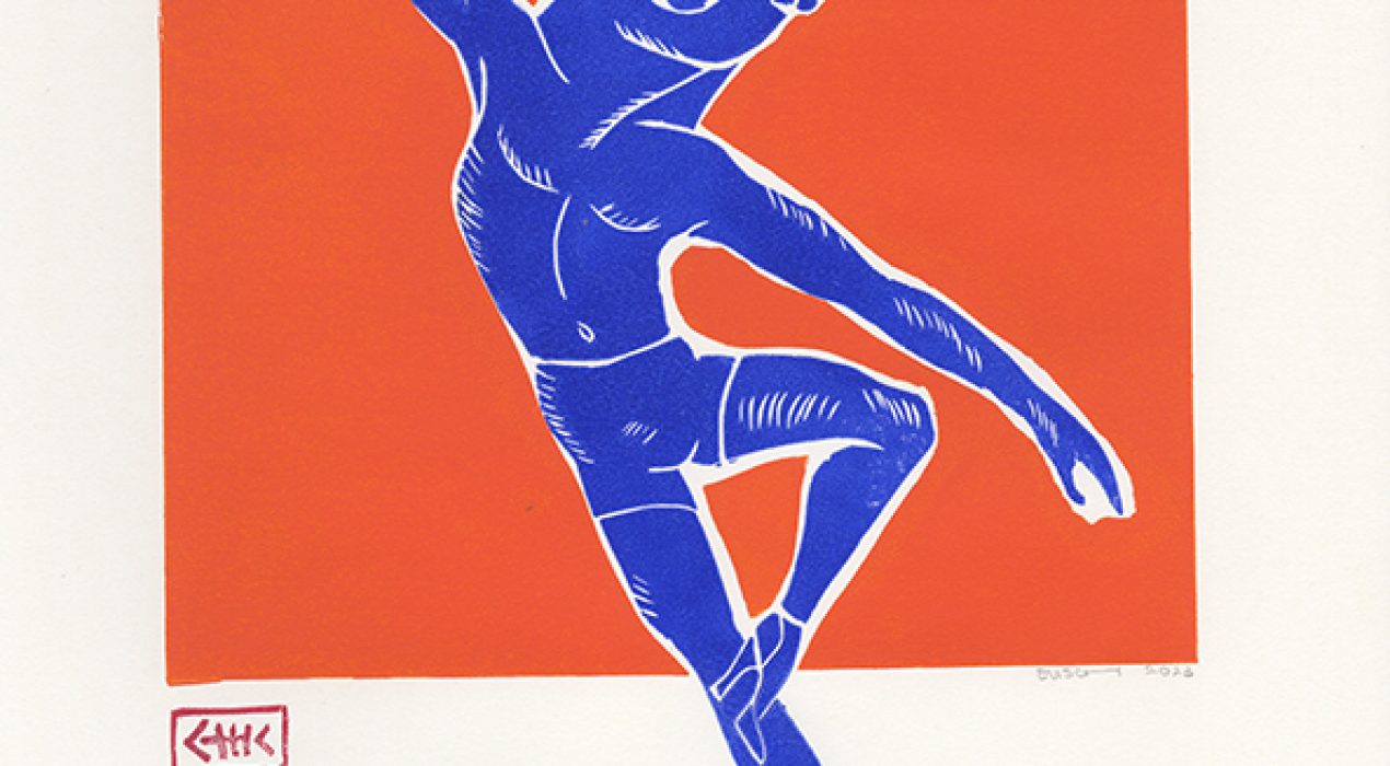 serie mythe, minotaurus en meer techniek linoprint inkt op papier 30 x 40 cm 2023