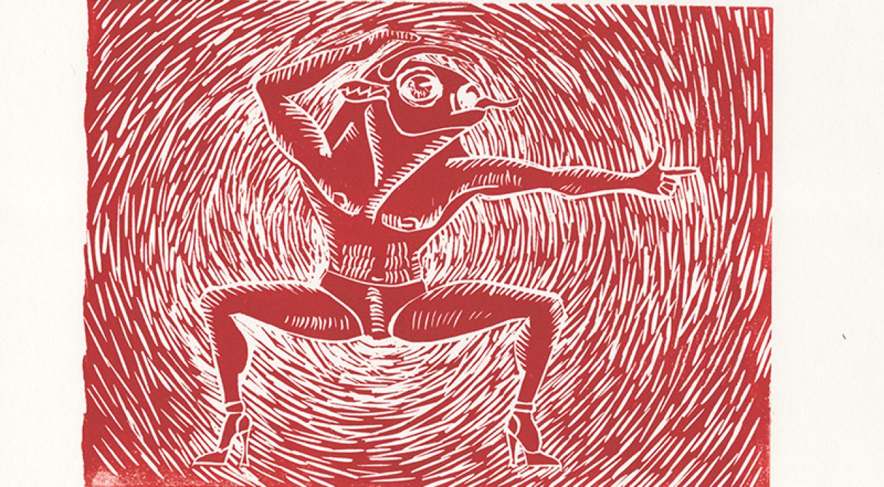 serie mythe, minotaurus en meer techniek linoprint inkt op papier 30 x 40 cm 2023
