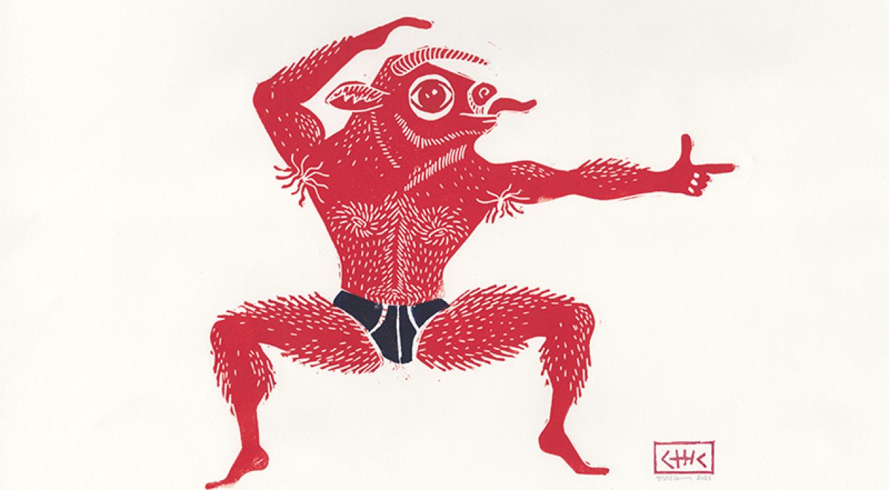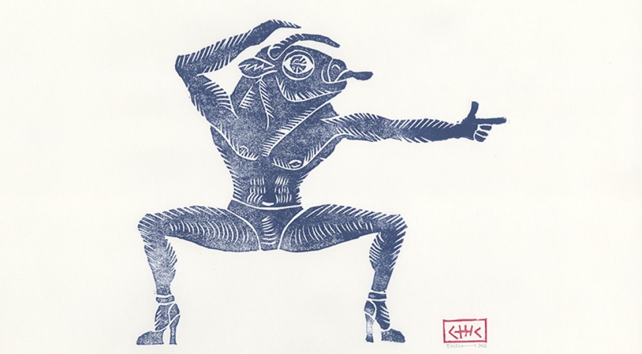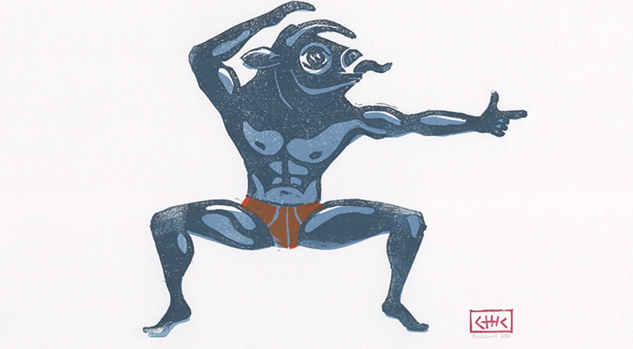 serie mythe, minotaurus en meer techniek linoprint inkt op papier 30 x 40 cm 2023